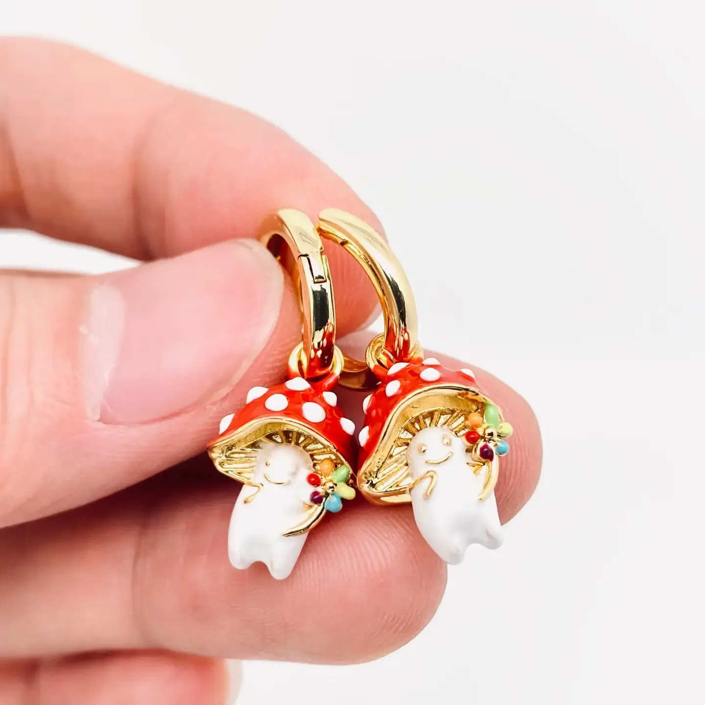 TINY POLKA DOT MUSHROOM EARRINGS AT FIRST, AND THEN YOU SEE THE LITTLE SMILING FACE
