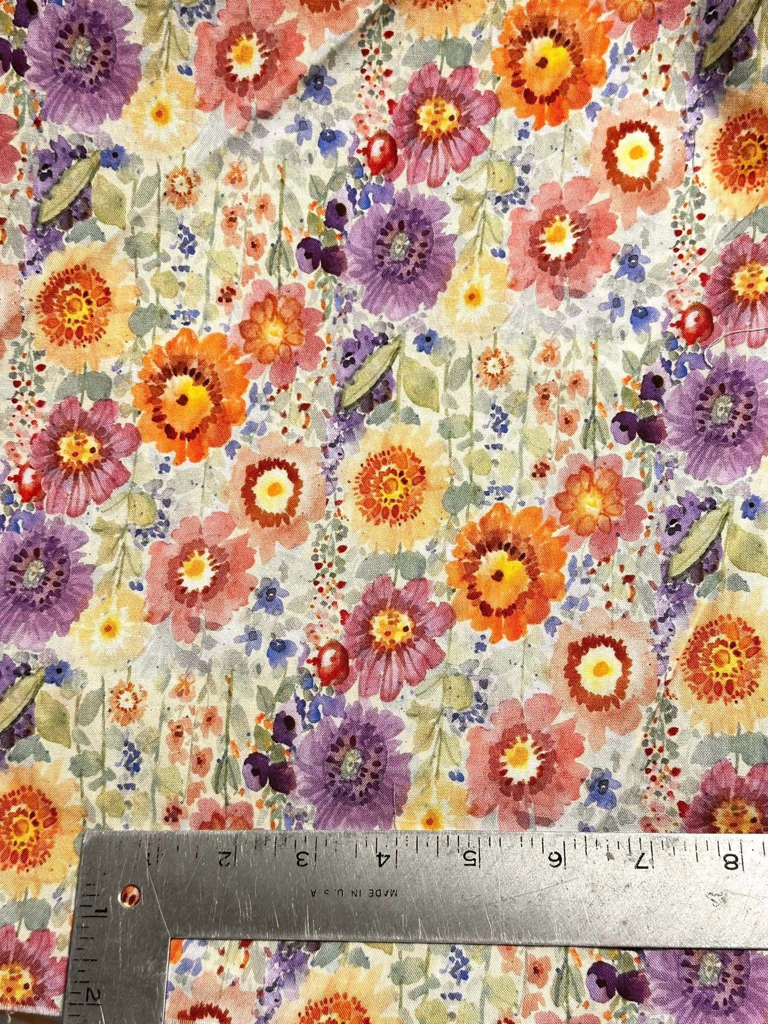 BRIGHT PASTEL FLOWERS FABRIC- 1/2 yard