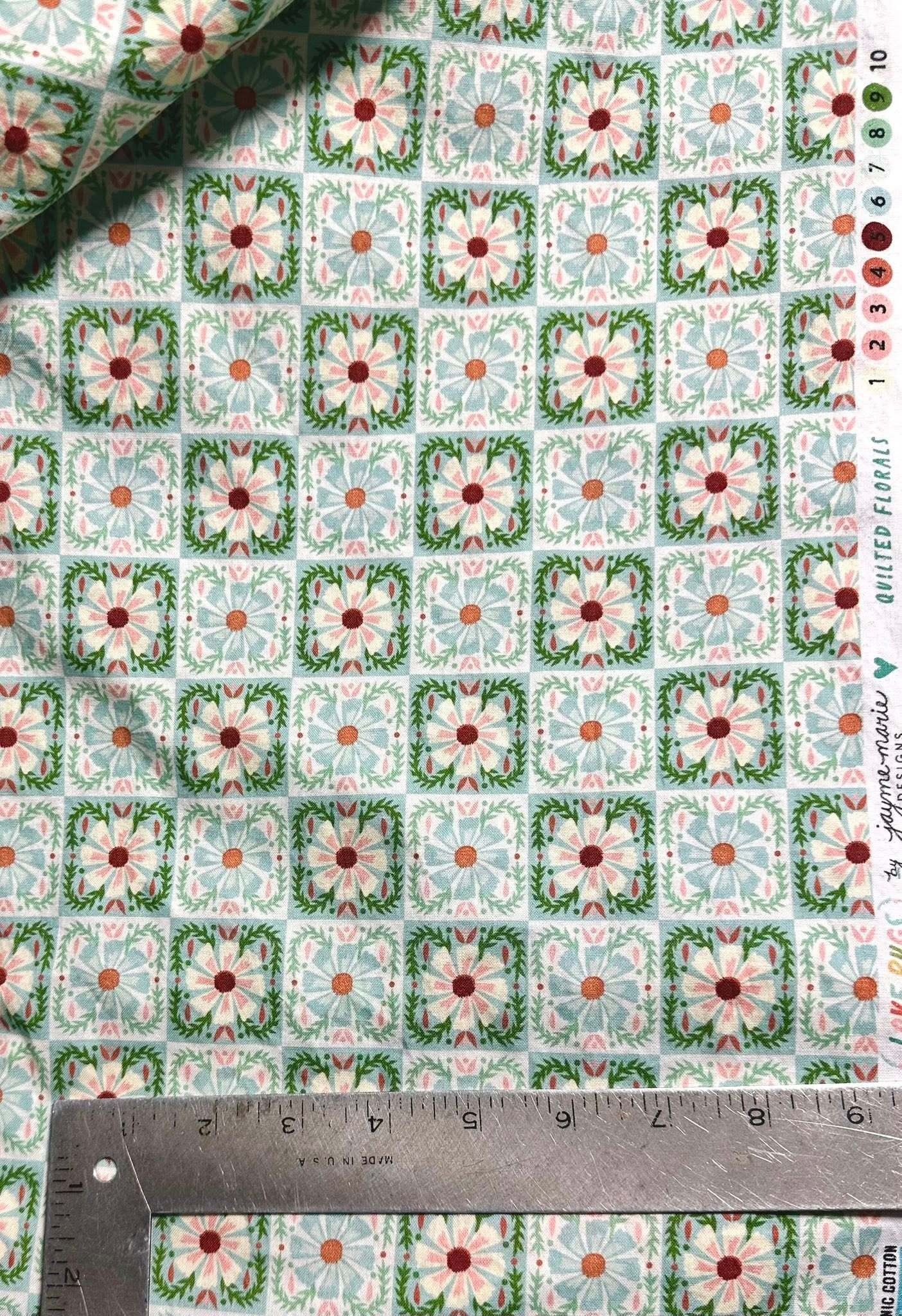 FLOWER TILES FABRIC- 1/2 yard