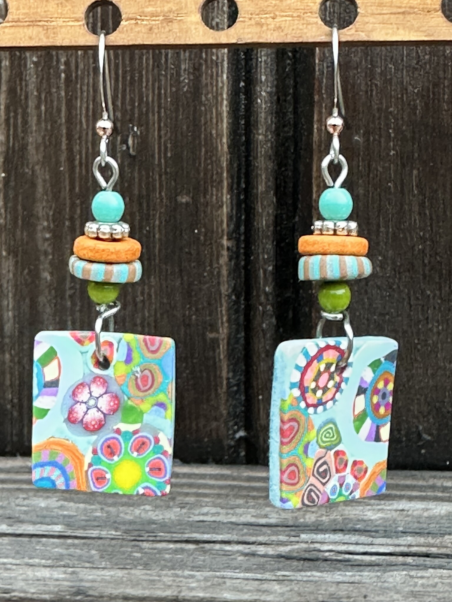 For the last 30 years, Kate's one of kind earrings, made from intricate polymer clay canes have been her best seller. These earrings will start conversations in grocery stores.  not kidding!