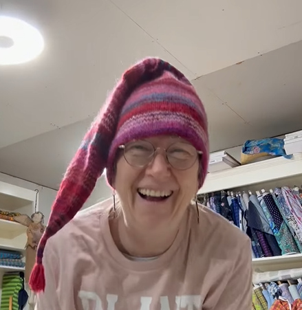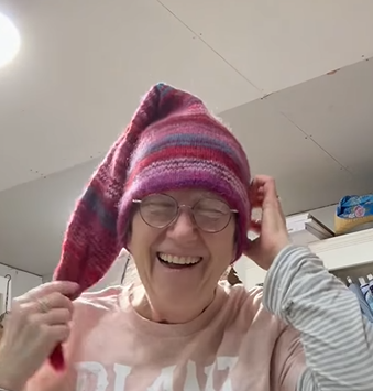 ALSO THIS IS A HAT FOR US 'BIG HEAD' GALS! YOU CAN SEE HOW COMFY THE FIT IS ON KATE, SO IF YOU HAVE TROUBLE WITH MANUFACTURED BEANIES THAT WON'T STAY ON YOUR HEAD, THIS MIGHT BE YOUR HAT.