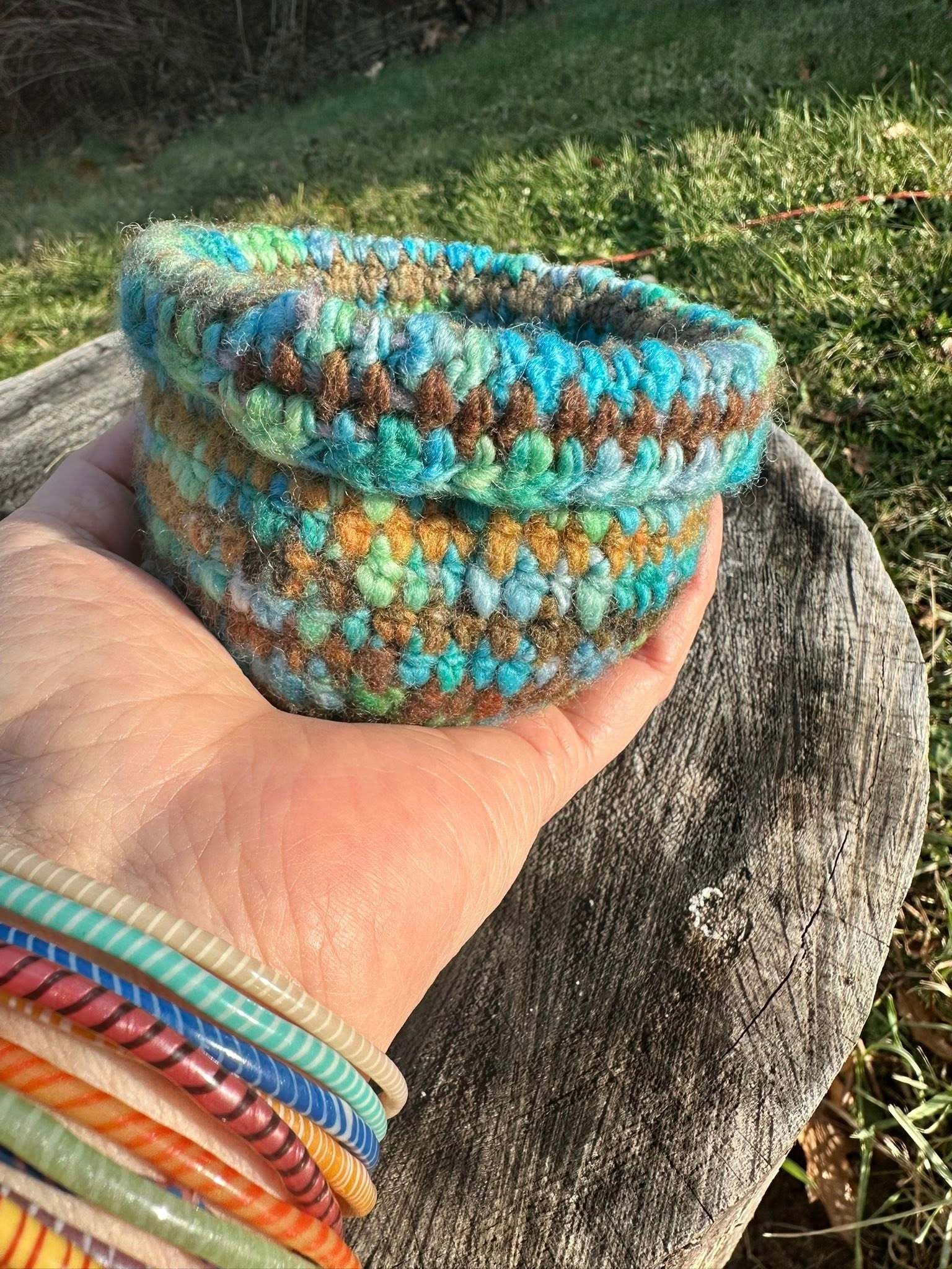 KATE'S ONE OF A KIND HAND CROCHETED OR KNITTED WOOL VESSELS.