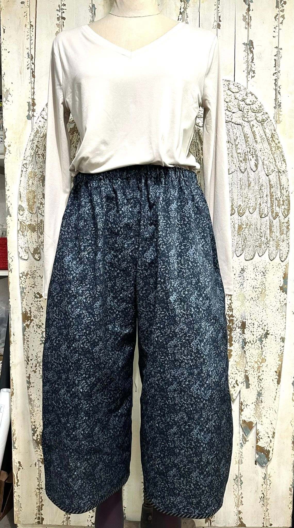 THE ALMOST FAMOUS CROPPED WIDE LEG JESSE PANT IN A VERSATILE CHARCOAL DITSY BOTANICAL PRINT
