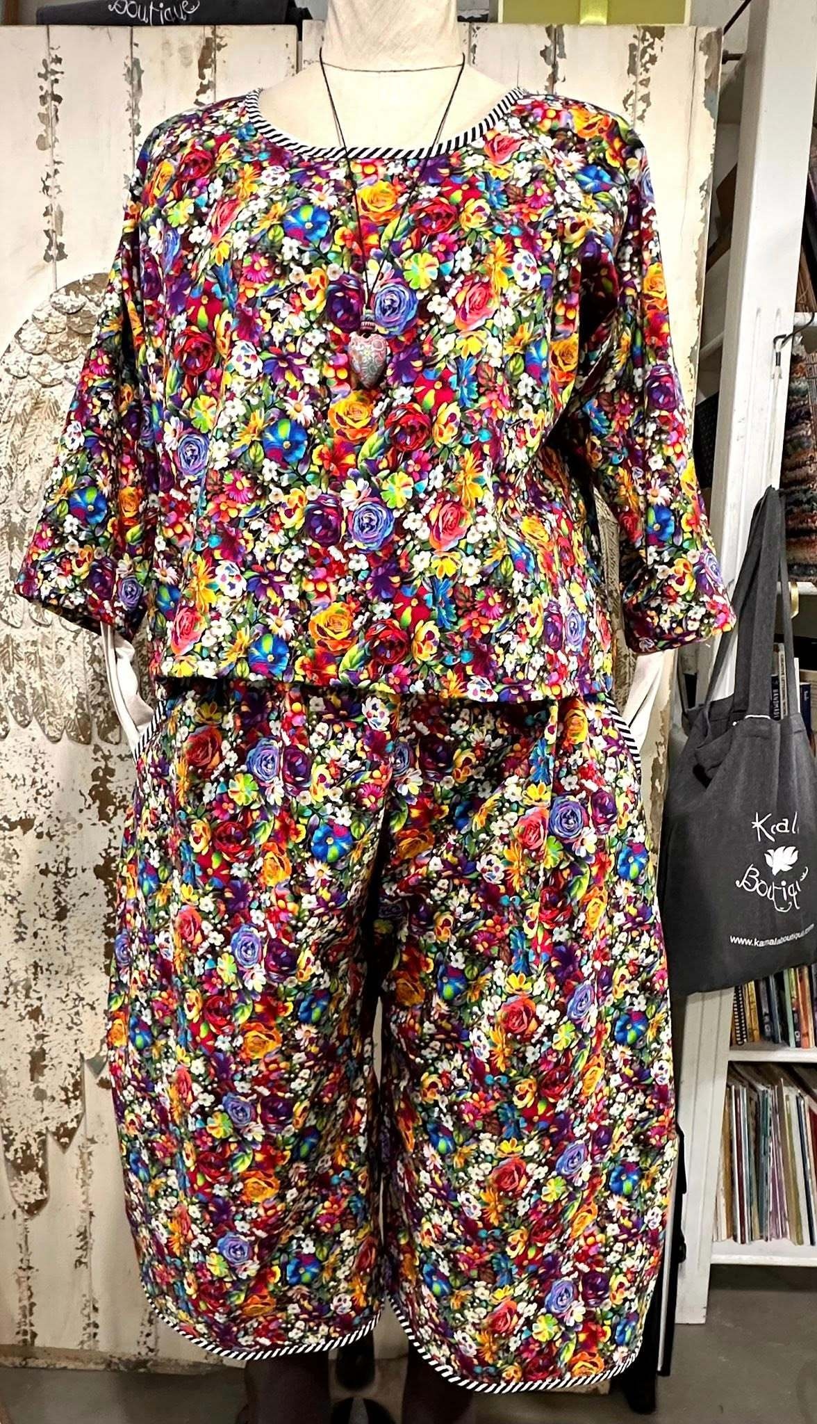 THE ALMOST FAMOUS CROPPED WIDE LEG JESSE PANT IN A SUPER VIBRANT FLORAL