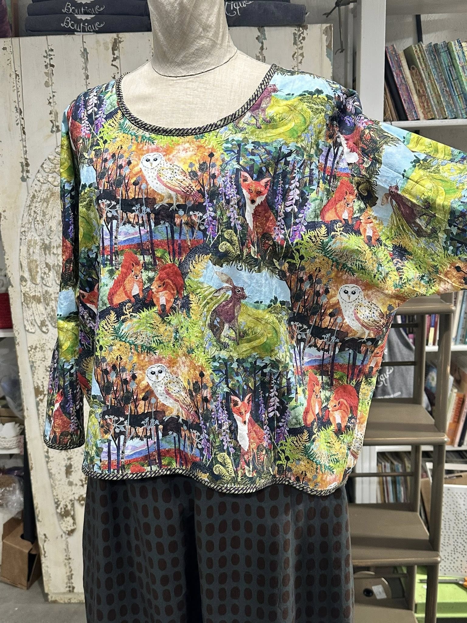 THE KAMALA TOP HAS A LOOSE SOFT FIT THAT CAN BE WORN ALONE OR LAYERED