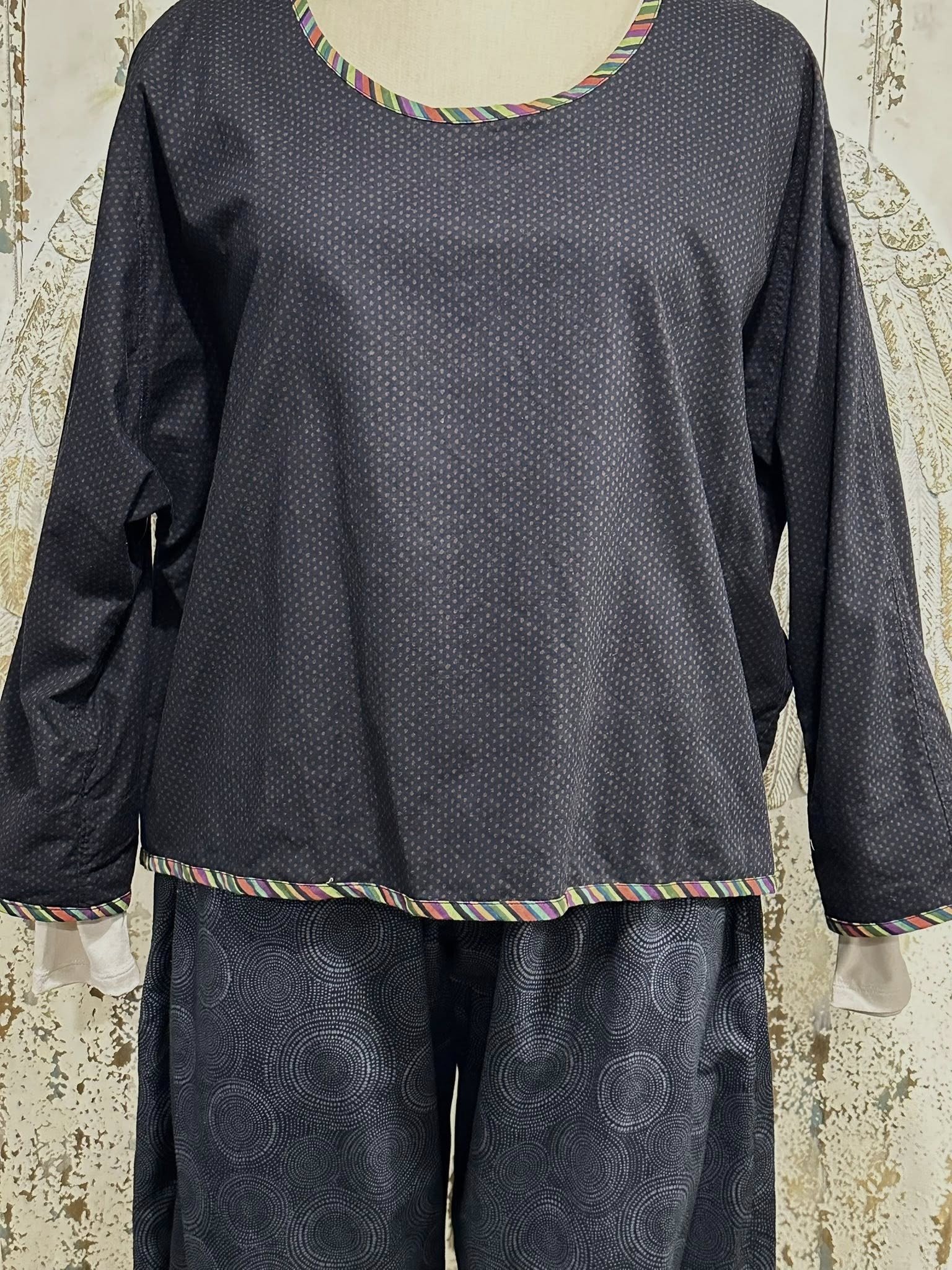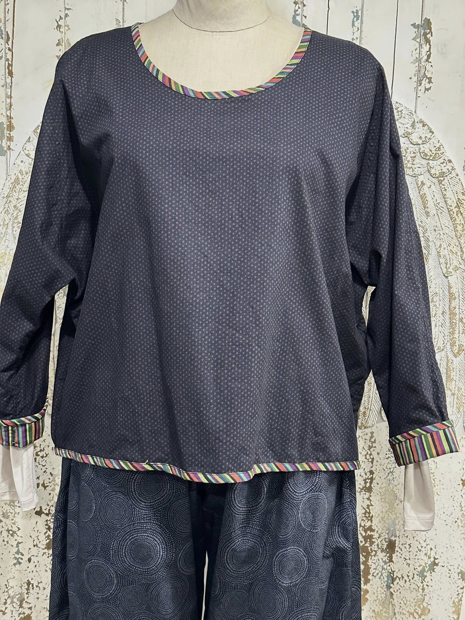 THE KAMALA TOP HAS A LOOSE SOFT FIT THAT CAN BE WORN ALONE OR LAYERED