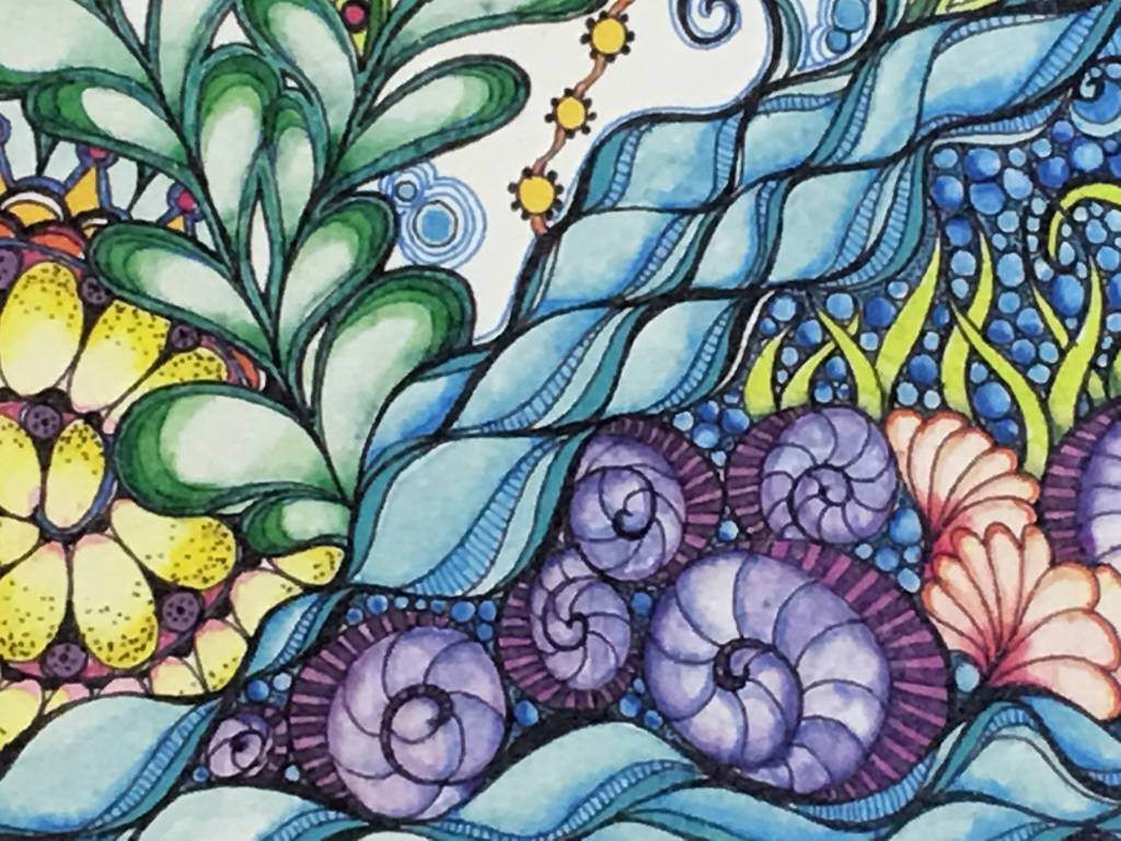The original of this fine quality print was hand drawn and colored with watercolors. This particular piece is also in a coffee table Zentangle art book!