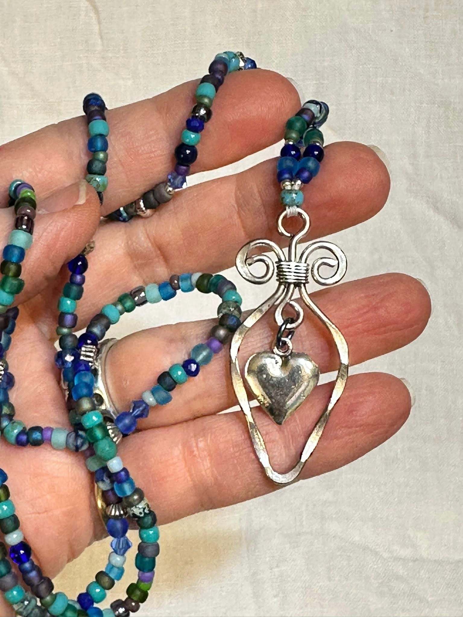 A SWEET HEART IN A FILIGREE FRAM IS THE FOCAL PENDANT