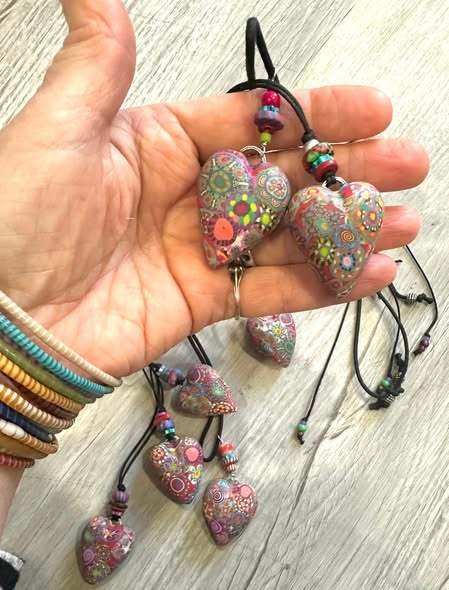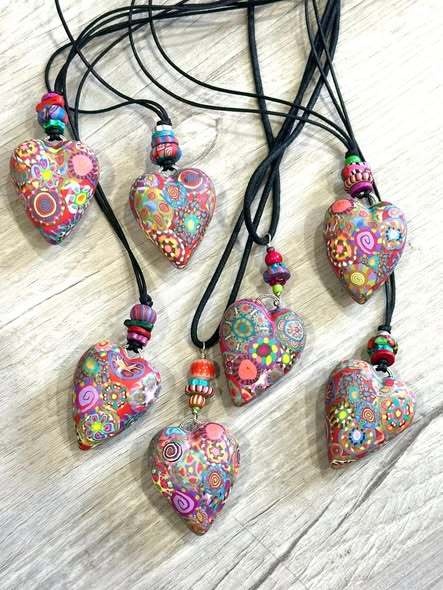 A BEST SELLING DESIGN OF KATE'S, EACH HEART IS HAND SCULPTED FROM POLYMER CLAY AND ADORNED WITH A LITTLE STACK OF PRETTY BEADS