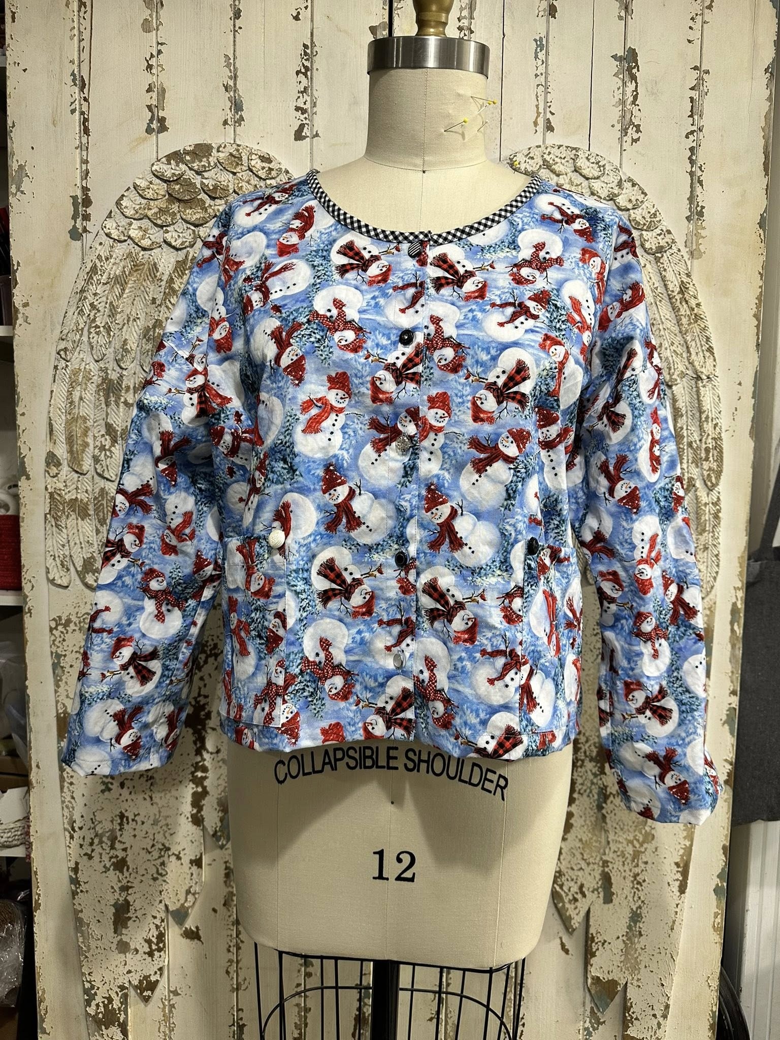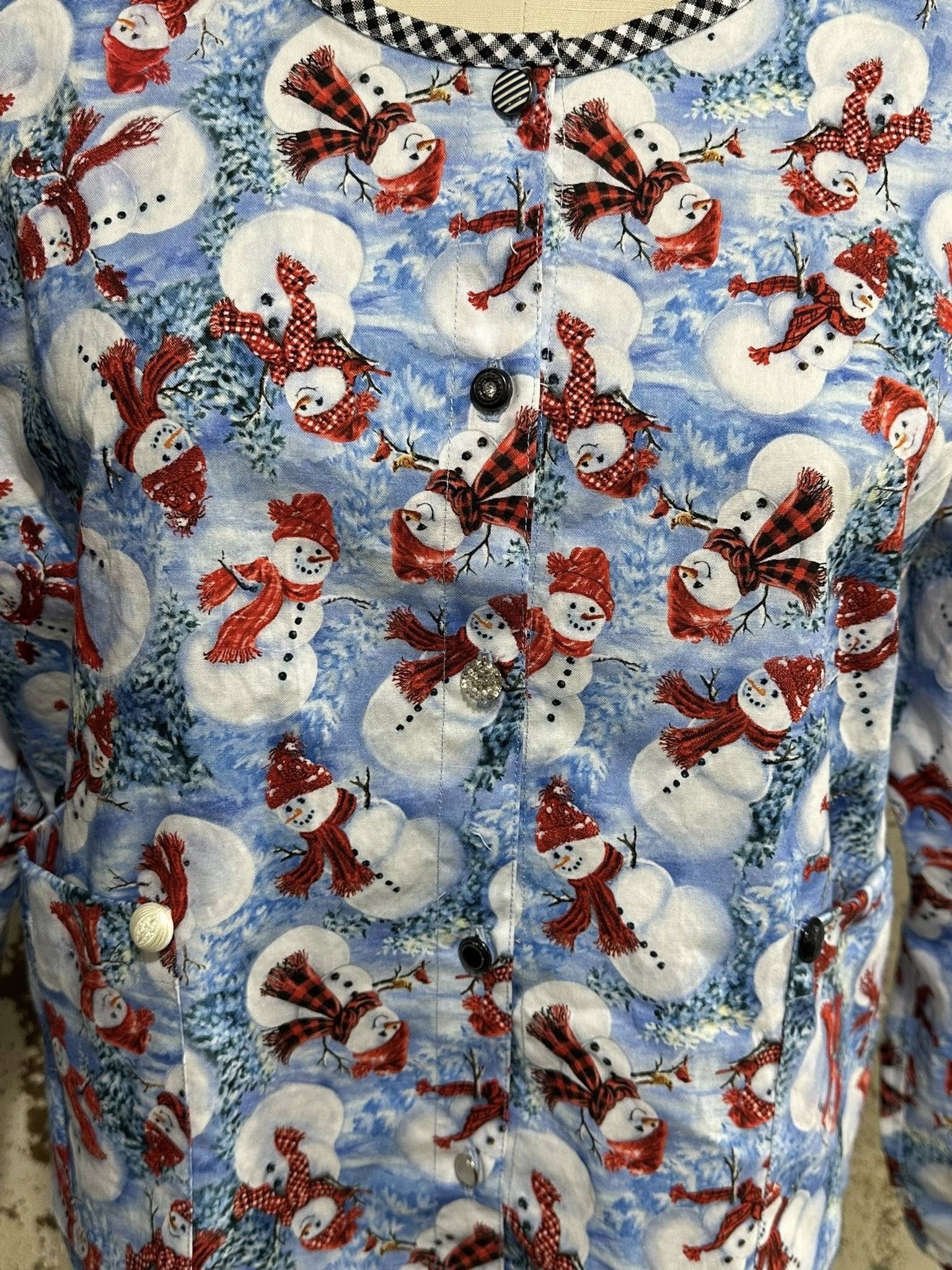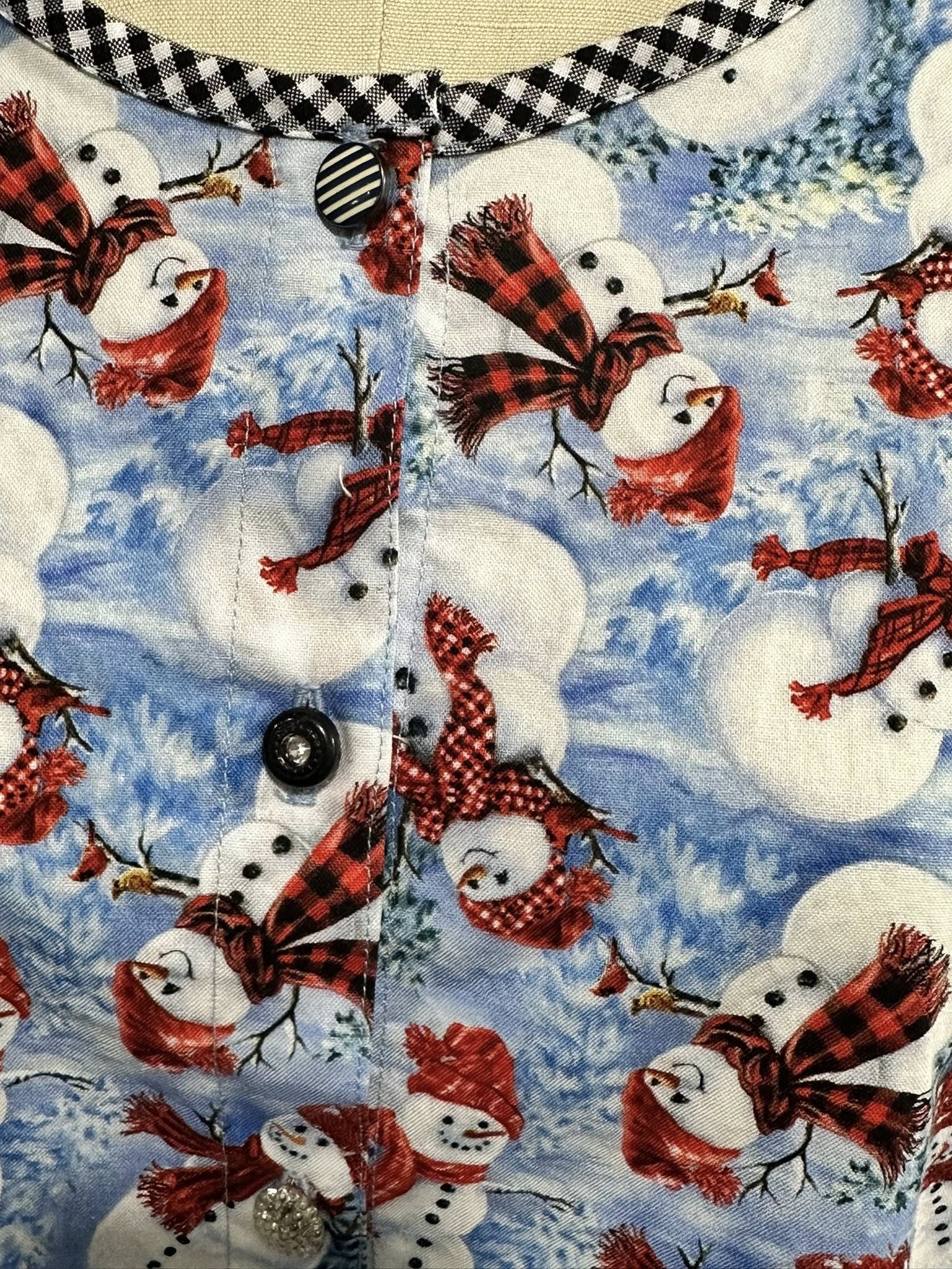 BEST SELLING MAGGIE TOP DONE IN A WINTER PRINT THAT IS PURE WHIMSYHAPPY SNOWMEN TO WEAR ALL WINTER!