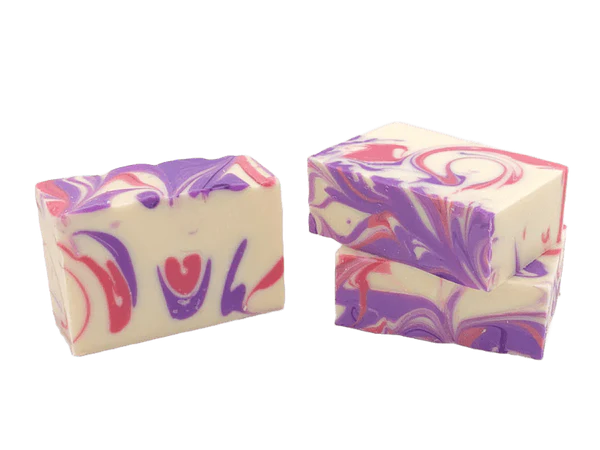 Our handmade soap starts with a basic recipe of organic palm oil, organic coconut oil, organic sunflower oil, and olive oil. There are no synthetic detergents or sulfates in our soap. We add Tussah silk fibers to our soap for a wonderful, silky lather. Due to the handmade nature of this product, colors and patterns may vary from bar to bar. We use phthalate free fragrances only!