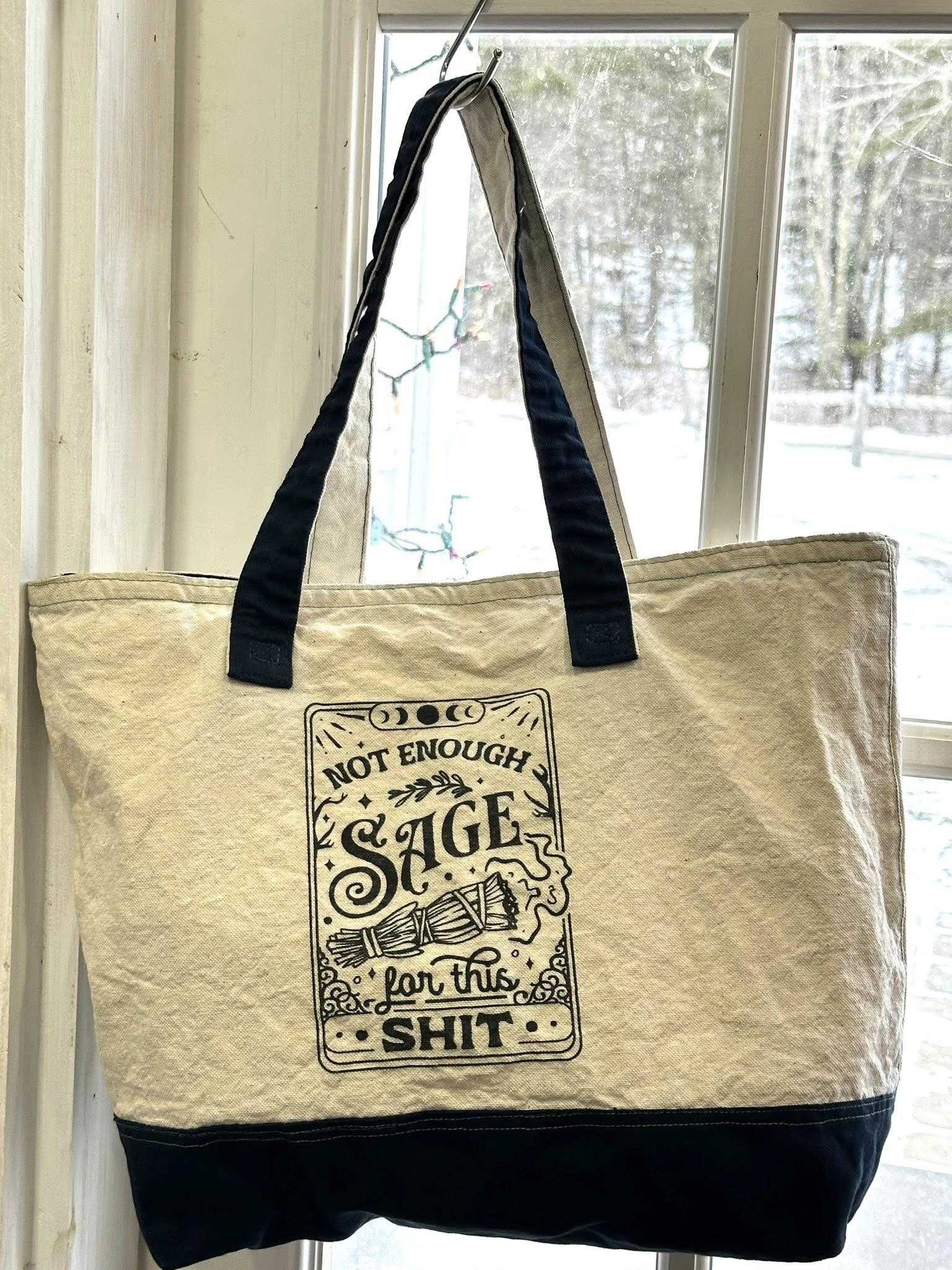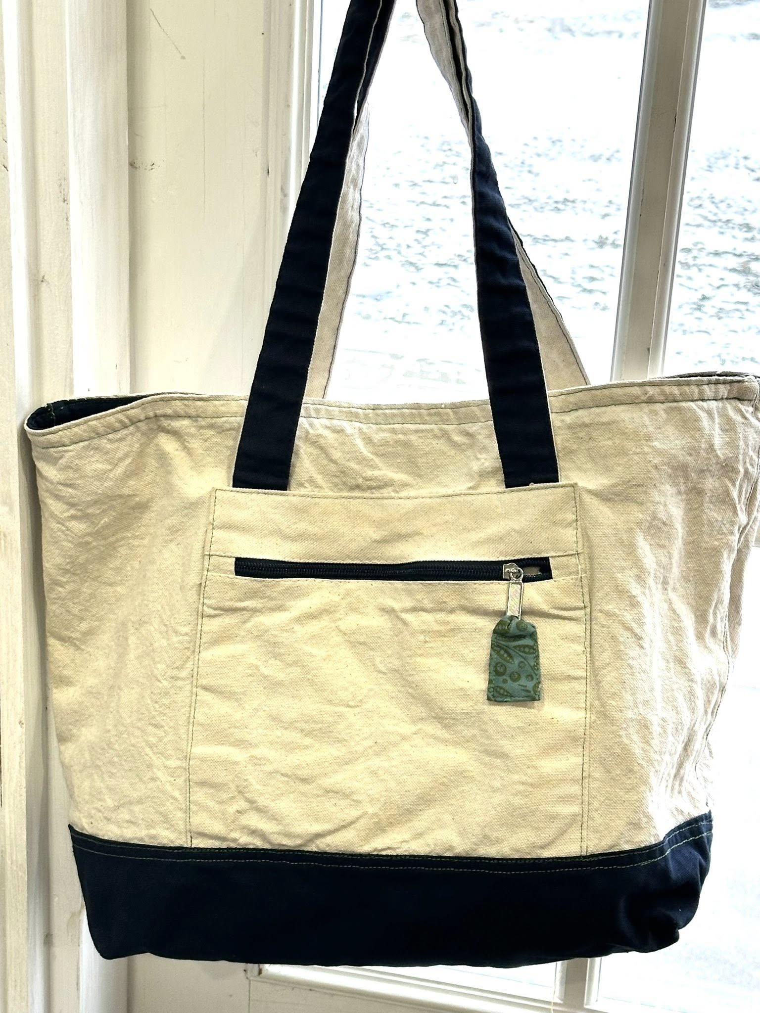 THIS TOTE SAYS IT ALL ABOUT THE STATE WE ARE IN.... 12" TALL, 16" WIDELINED, INSIDE POCKET, BACK POCKET, ZIP TOP