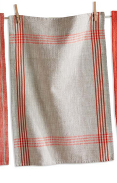 RUSTIC COTTON TOWEL IN NATURAL WITH RICH ORANGE BORDER
