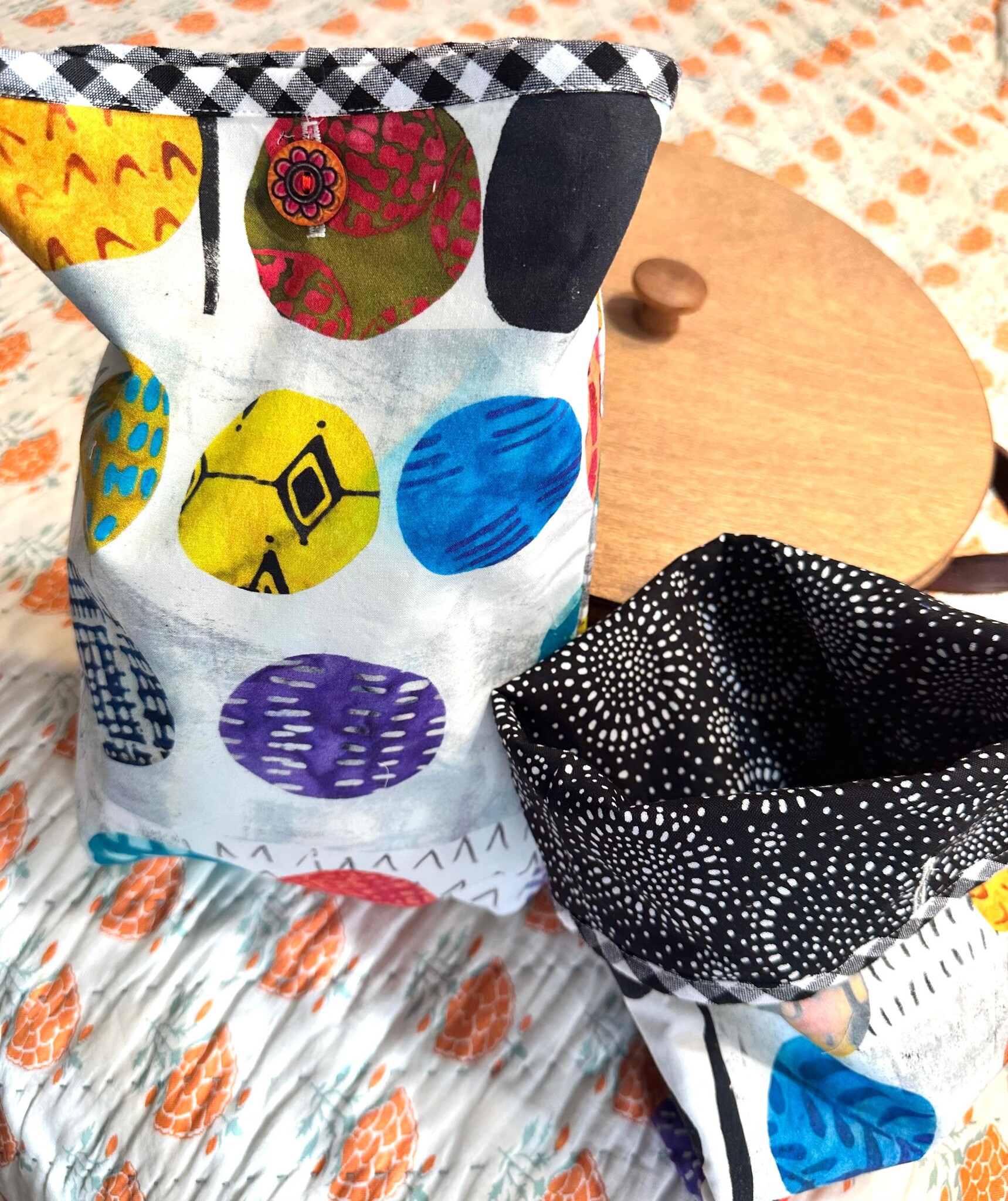 Kate, owner of Kamala, LOVES to make bags, even as young as 12 years old when she made a purse out of a basket, the love of creating fabric containers never faded.