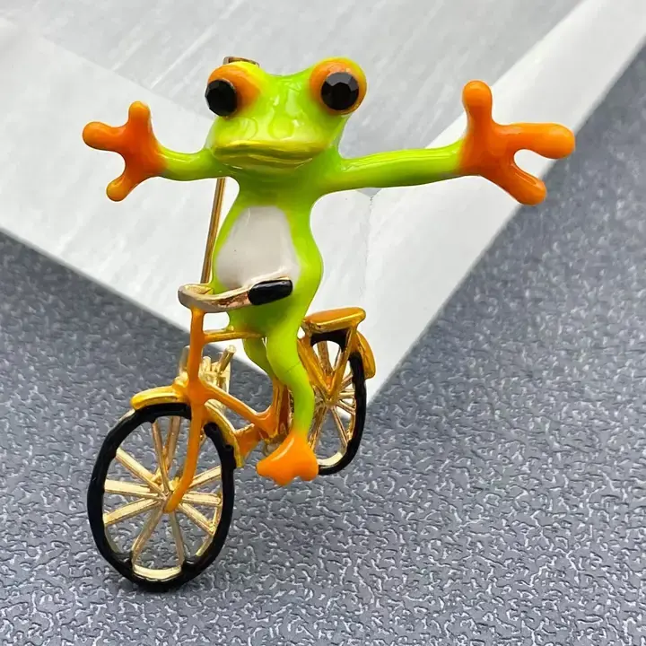 WHIMSICAL FROG ON A BIKE PIN