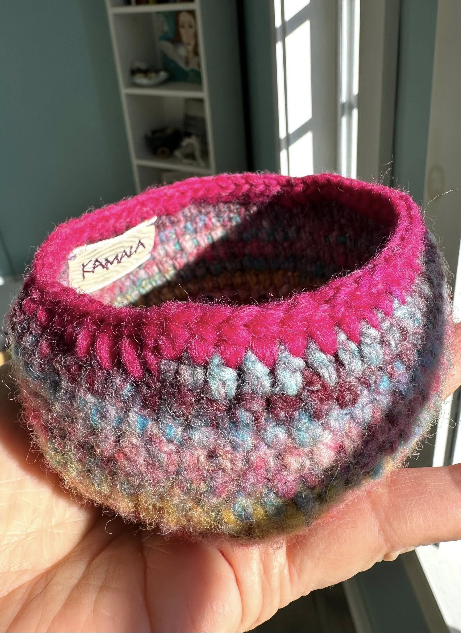 KATE'S ONE OF A KIND HAND CROCHETED OR KNITTED WOOL VESSELS.